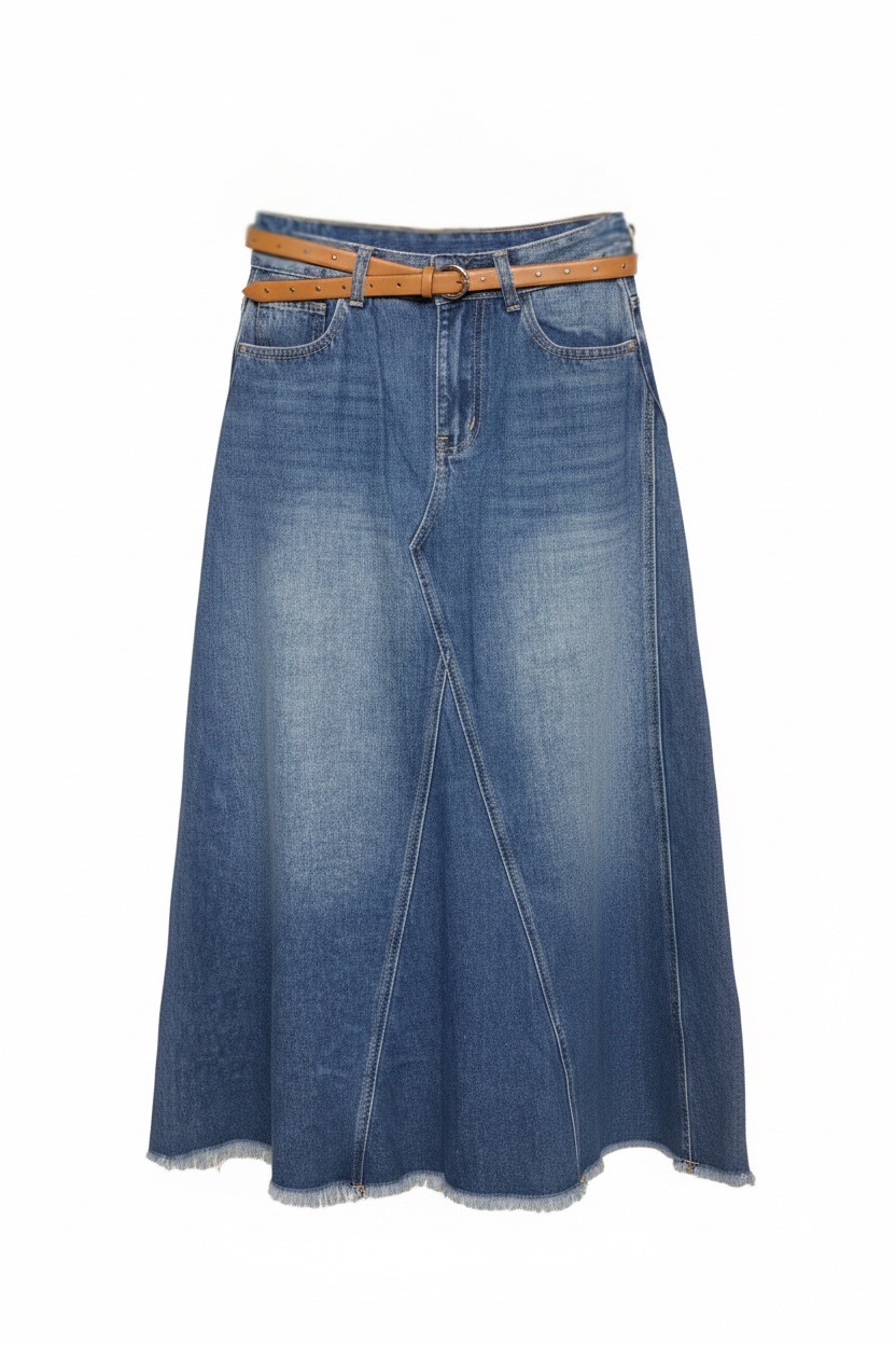 DENIM MIDI ΦΟΥΣΤΑ ΣΕ ΑΝΕΤΗ A-LINE ΓΡΑΜΜΗ ΜΕ ΔΙΑΚΡΙΤΙΚΟ ΞΕΦΤΙ ΣΤΟ ΤΕΛΕΙΩΜΑ.